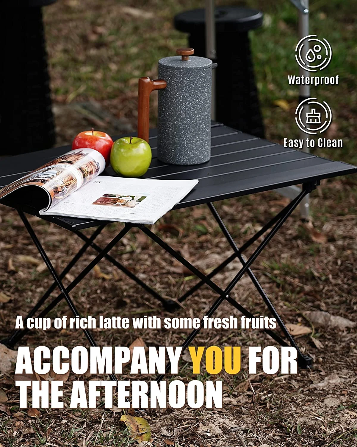 EASY TO CLEAN - The aluminum table top is waterproof, rust-resistance, weatherproof, and easy to wipe clean.
