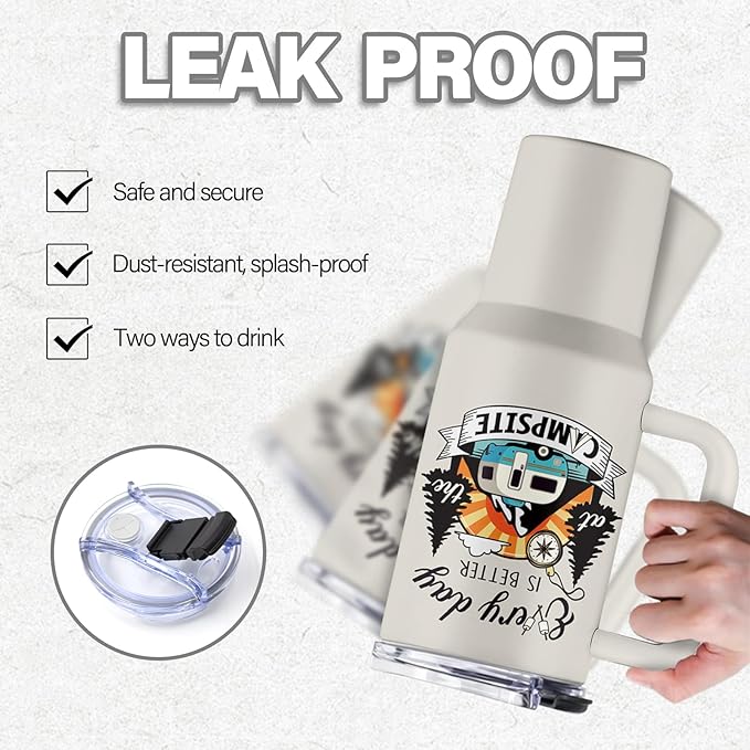 Each tumbler features unique camping-inspired prints that remind you of the freedom of the open road and the peace of the outdoors — making it the perfect gift for any camper, hiker, or nature enthusiast.