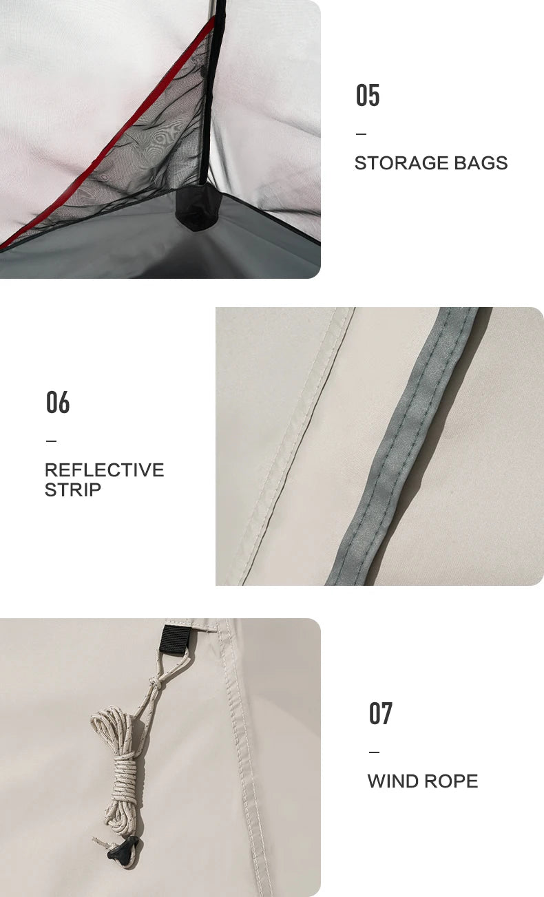 Crafted from 201T polyester fiber with a PU2000–3000mm waterproof rating, the TrailLodge keeps you dry through rain and dew.