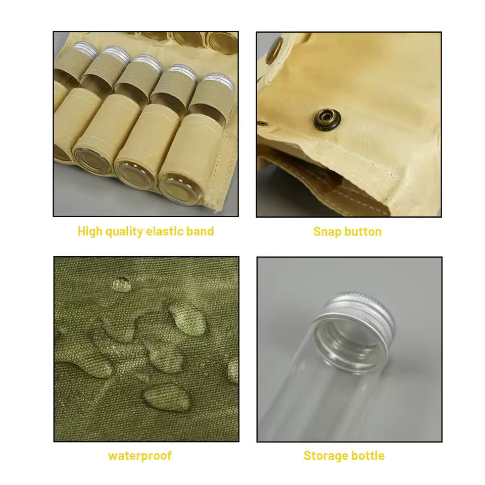 The set includes 9 transparent food-grade glass jars (4 with cork lids and 5 with aluminum lids), making it easy to see and use your favorite seasonings. Compact, portable, and reliable, this spice bag is a must-have for anyone who loves flavorful meals wherever they go.