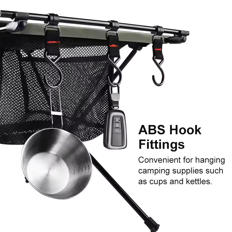 Constructed from premium ultra-light aluminum alloy, this camping table offers a smooth, wear-resistant surface that stands up to rugged outdoor use. Its beautiful hollow board design isn’t just stylish — it also provides practical hanging points for small tools and accessories, combining aesthetic appeal with functional design.